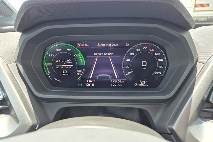 לוח המחוונים (10.25") ומסך האינפוטיינמנט (10.1") איכותיים עם רזולוציה טובה, כפי שאנו מכירים באאודי, הם מתממשקים לאנדרואיד ולאפל, וגם מערכת השמע בת 8 הרמקולים איכותית מאד. תפעול בקרת האקלים המפוצלת נעשית על ידי כפתורים פיזיים להם קליקים המשדרים איכות ועמידות.