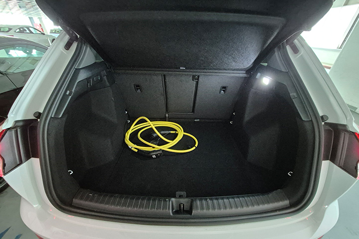 תא המטען גדול מאד בכל קנה מידה, ונפתח חשמלית. הוא עמוק למדי, המפתח שלו רחב וגבוה, והוא שימושי עד מאד. מתחת לרצפתו יש תא אחסון מלבני, בעיקר לערכת הניפוח ולכבל הטעינה.